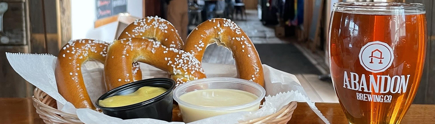 - SOFT PRETZELS$10Two soft pretzels served with house-made beer cheese and honey mustard. Serves 2-3.
